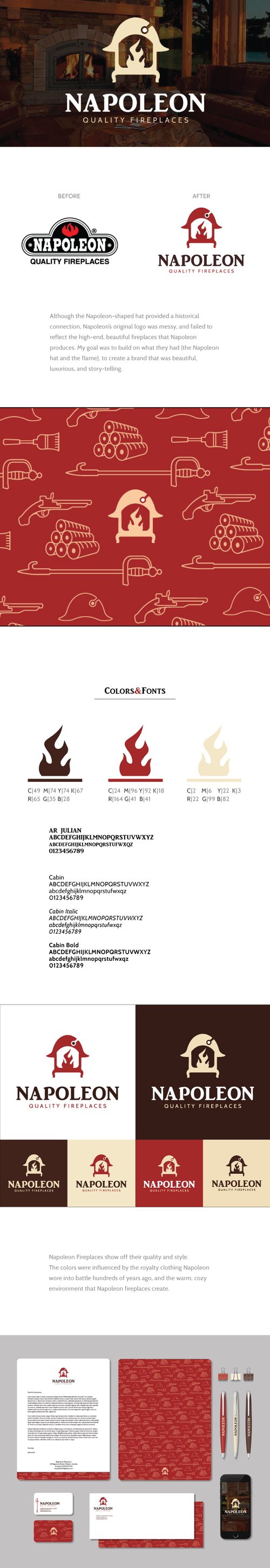 Napoleon Fireplaces produce high-end electrical & natural fireplaces that look beautiful and make for a warm, cozy environment. They needed a re-brand that reflects that, aimed towards wealthy families with large, roomy homes. I created a connection between Napoleon Bonaparte and these fireplaces, displayed his story throughout the brand, and in a quirky way, gave the brand a feeling of luxury and warmth that their customers commonly experience.