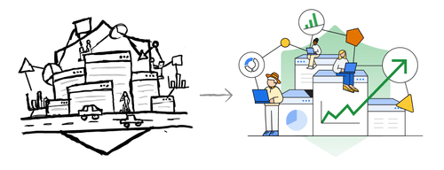 To achieve this, I developed a unique visual style that blended abstract illustrations with Google's brand aesthetic. For the illustrations, I created a made-up environment that mixed humans and objects we use on a daily basis, with abstract data visualizations and UI elements we interact with on screen. This made the complex concepts more relatable and easier to understand.